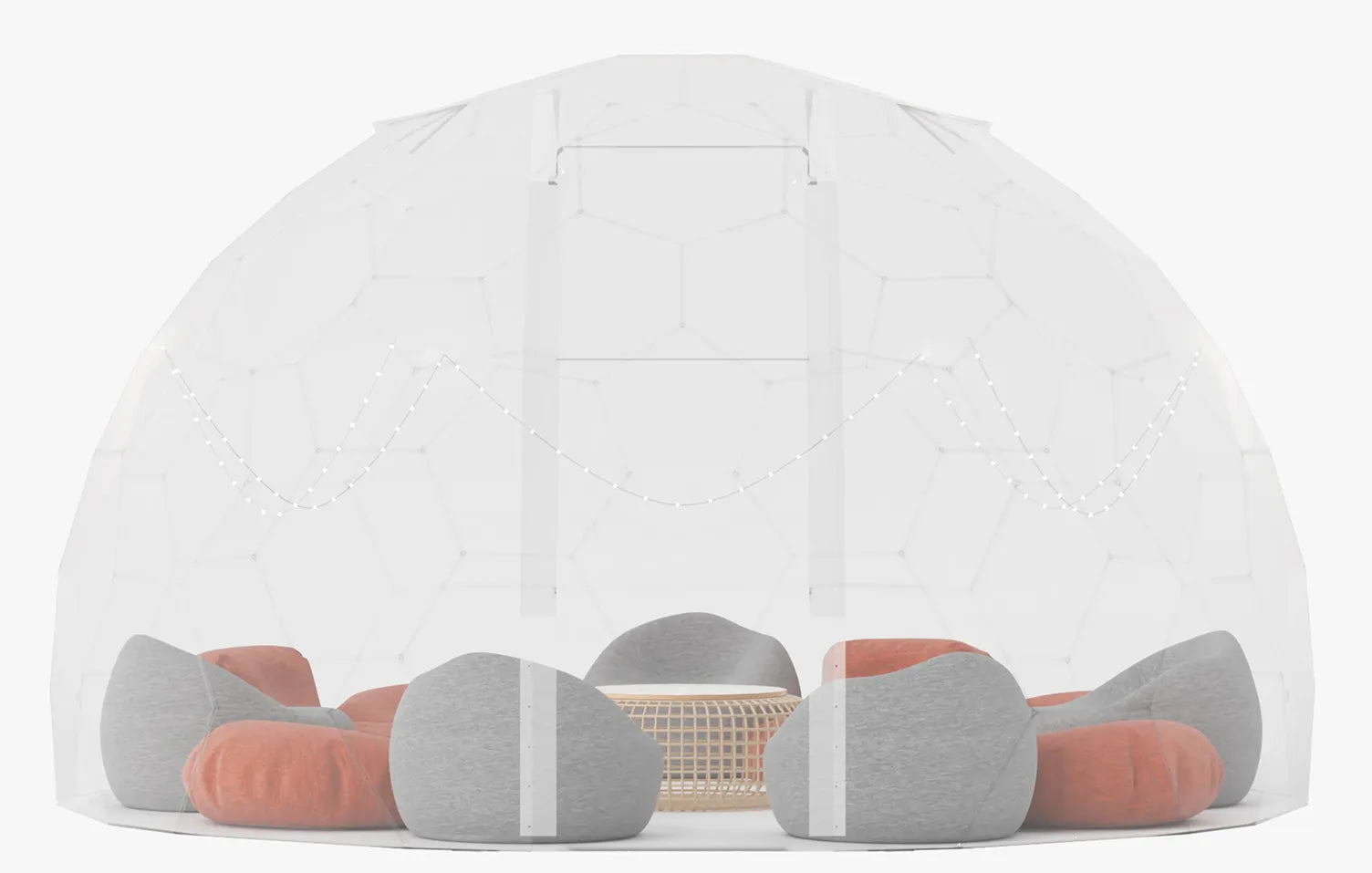 GeoDomeX's ample space can accommodate a comfortable lounge configuration, with a sofa and armchairs that can seat 6-8 people in a relaxed manner. You'll even have room to spare for decorative pieces like plants and coffee tables, making it the perfect venue for a cosy gathering or a casual hangout with friends and family.